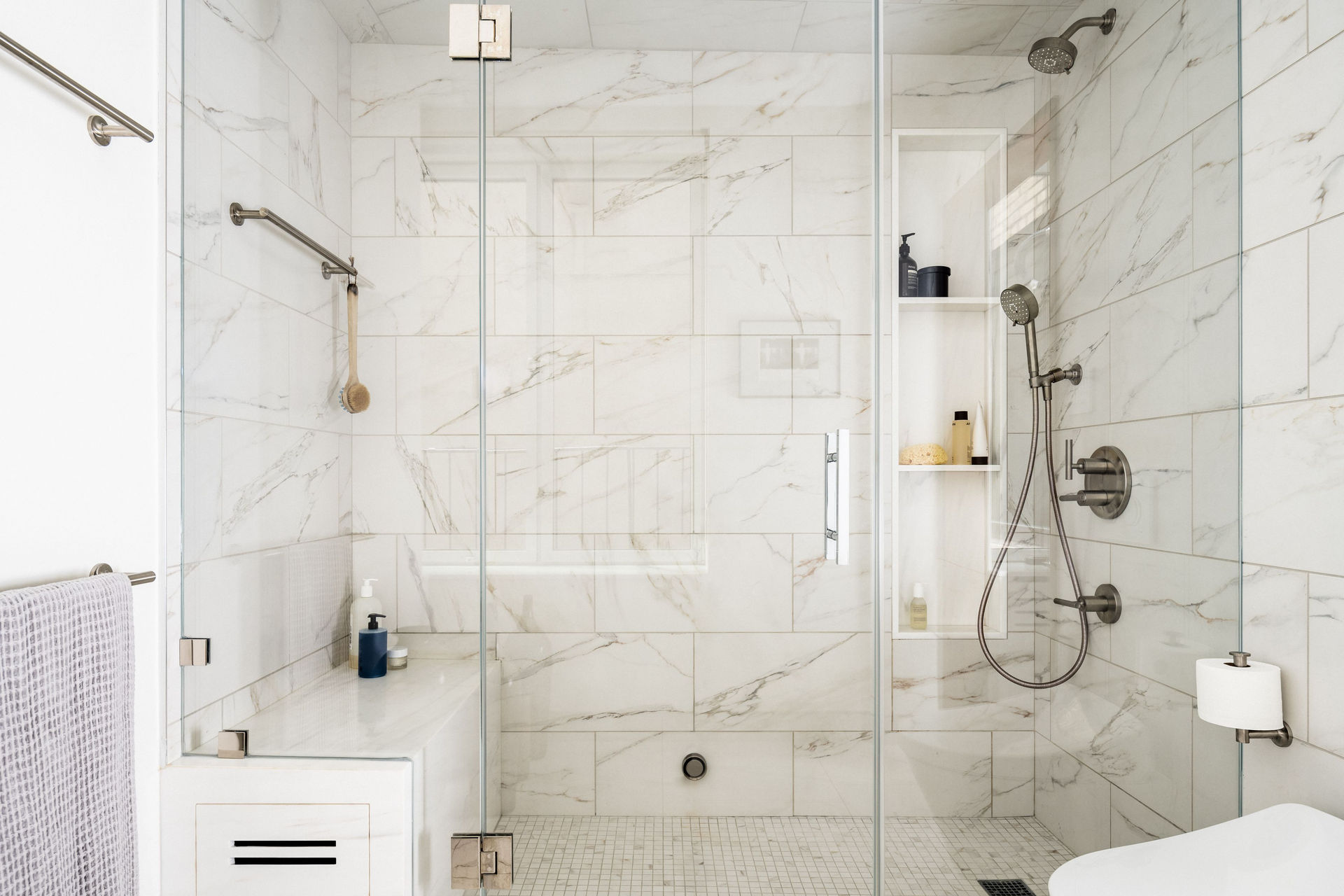 New windows and lighting thoughtfully designed to accent the clients’ art collection and living spaces. The reimagined home features custom elements including a custom designed kitchen, a floating staircase, a living room shelving wall, millwork desks, a main en suite bathroom with steam shower and custom vanity.